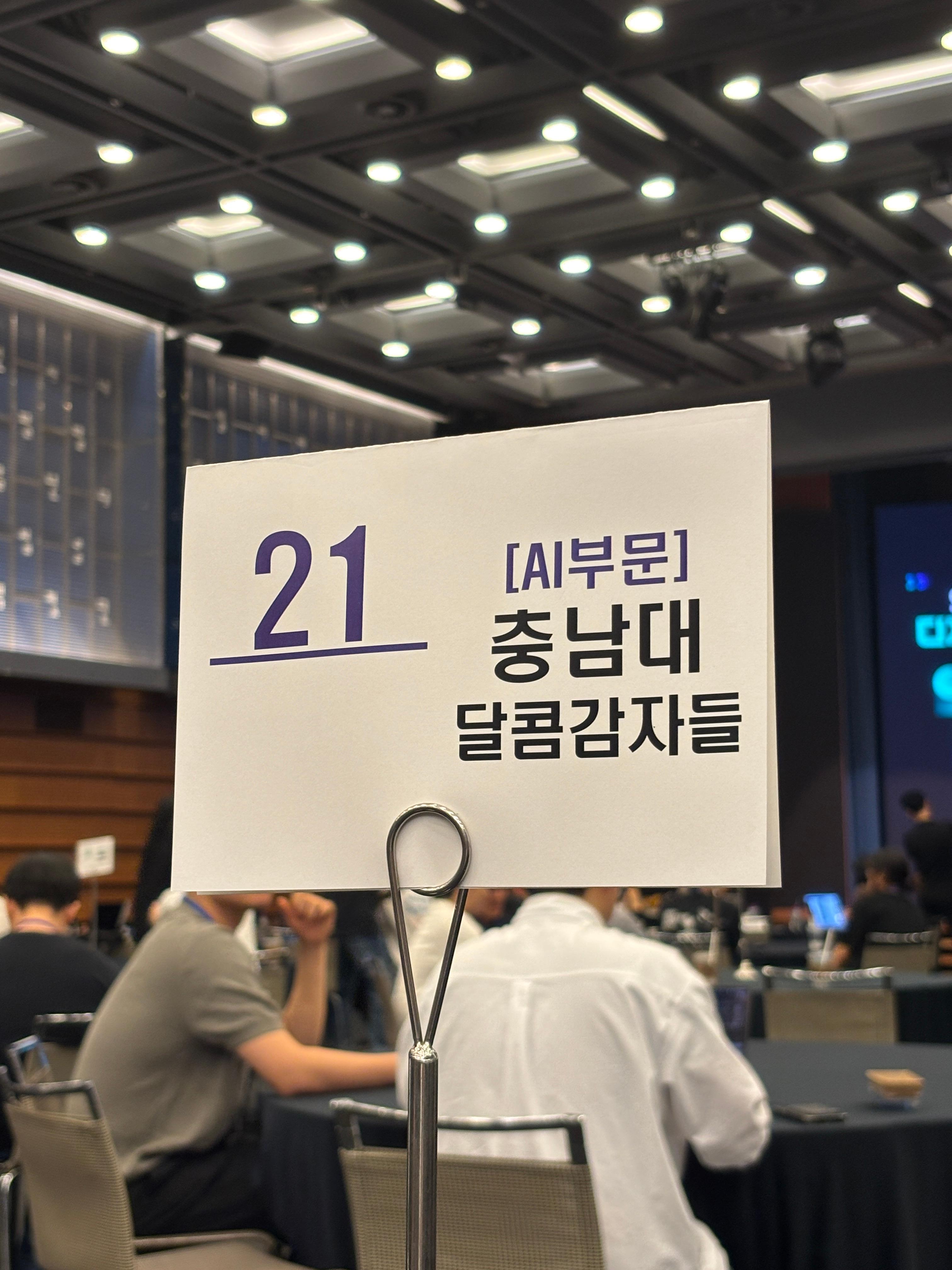 장소가 지하1층이었는데 내려가자마자 누가봐도 포토존인 곳이..! 각자 명찰을 달고 있는 사람들을 보니 본선 무대라는 것이 실감나기 시작했다. 팀원 2명이 발표와 질의응답을 담당했고 나머지는 대기실에서 기다렸다. 우리가 한걸 당당하게만 표현하고 나오면 된다고 생각했는데 팀원들이 정말 잘해준 것 같다. 항상 느끼는 것이지만 이런 대회는 수상의 목적도 있지만 커넥션도 중요하다고 생각한다. 대기실에 있으면서 회사 간부님의 앞자리에 우연히 앉게되었고 꽤 긴 대화를 하게 되었다. 그 대화가 나의 마인드셋이나 이런걸 좀 다시 생각해보게되는 계기가 되었고 말씀해주신대로 겁 없이 궁금한 사항이 있을 때 받은 명함으로 연락을 드려봐야겠다!!ㅎㅎ